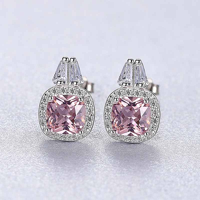 Luxury 925 Silver Morganite Stud Earrings