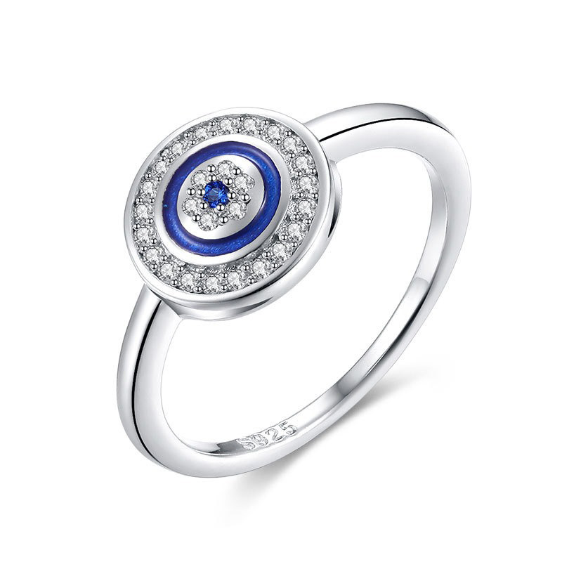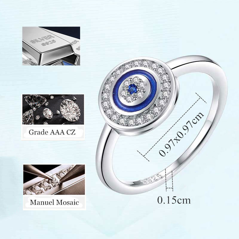 Stunning 925 Sterling Silver lucky Eye Ring, Blue Enamel Finish inlaid with Sparkling Cubic Zirconia Stones.
