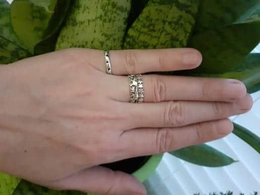 The rings are very beautiful and very well finished. They are 100% silver. They also have the seal. So far, everything I have bought in this store is real silver (verified). The seller is very kind. I recommend shopping in this store with peace of mind. Thank you so much for everything!